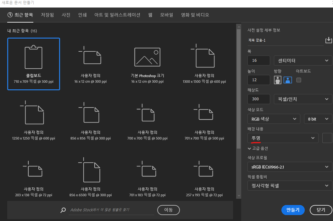 오른쪽보시면 배경내용을 투명으로만 바꾸면됩니다